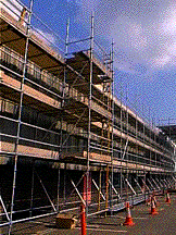 | Access Scaffold For Wall And Roof Cladding for Winsford, Cheshire | Support Scaffold For Piling Work for Railtrack | The modex system close up. |
